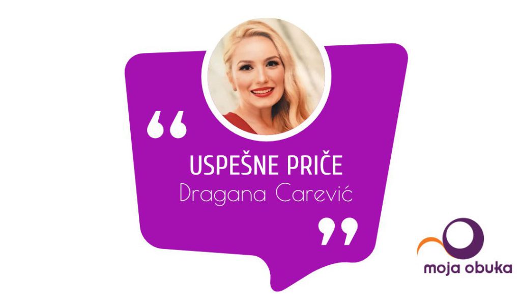 Tražila sam na internetu obuku koja bi mogla da bude pravi pogodak i naišla na Moju obuku.  Sa druge strane žice, javio se jedan prijatan glas, odgovarajući na moja pitanja. Sve smo se dogovorile i ja sam krenula na prvu od dve obuke u kompaniji “Moja obuka”.